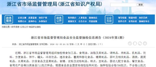 浙江省市場(chǎng)監(jiān)督管理局食品安全監(jiān)督抽檢信息通告(2024年第1期)近期,浙江省市場(chǎng)監(jiān)督管理局...[正文]